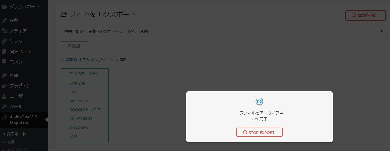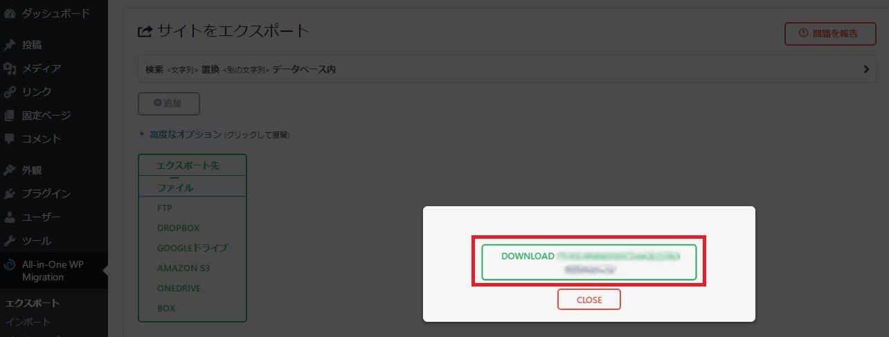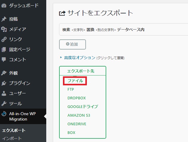 手順としては、まずは移転用のプラグインを移転前のワードプレスにインストール。